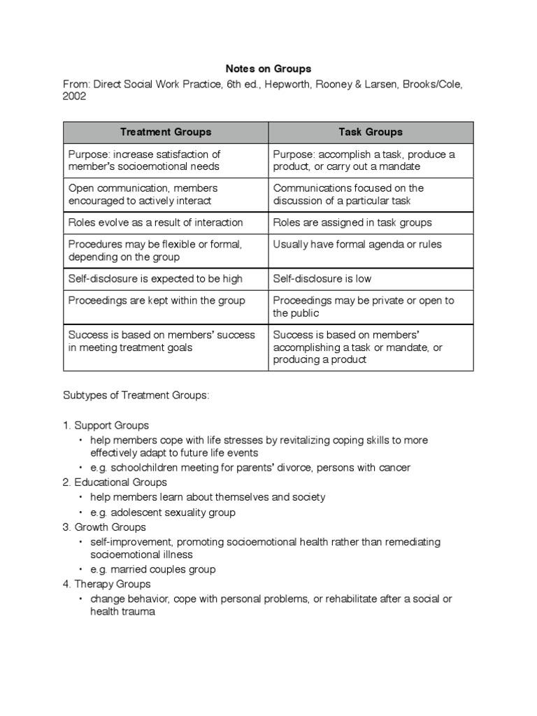 Treatment Groups In Social Work