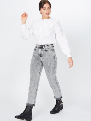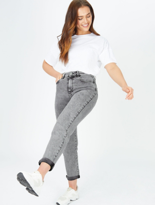Style with an oversized tee and biker boots. Mom jeans are so hot right now. Grey Acid Wash Mom Jeans features in our Jeans Jeggings collection.